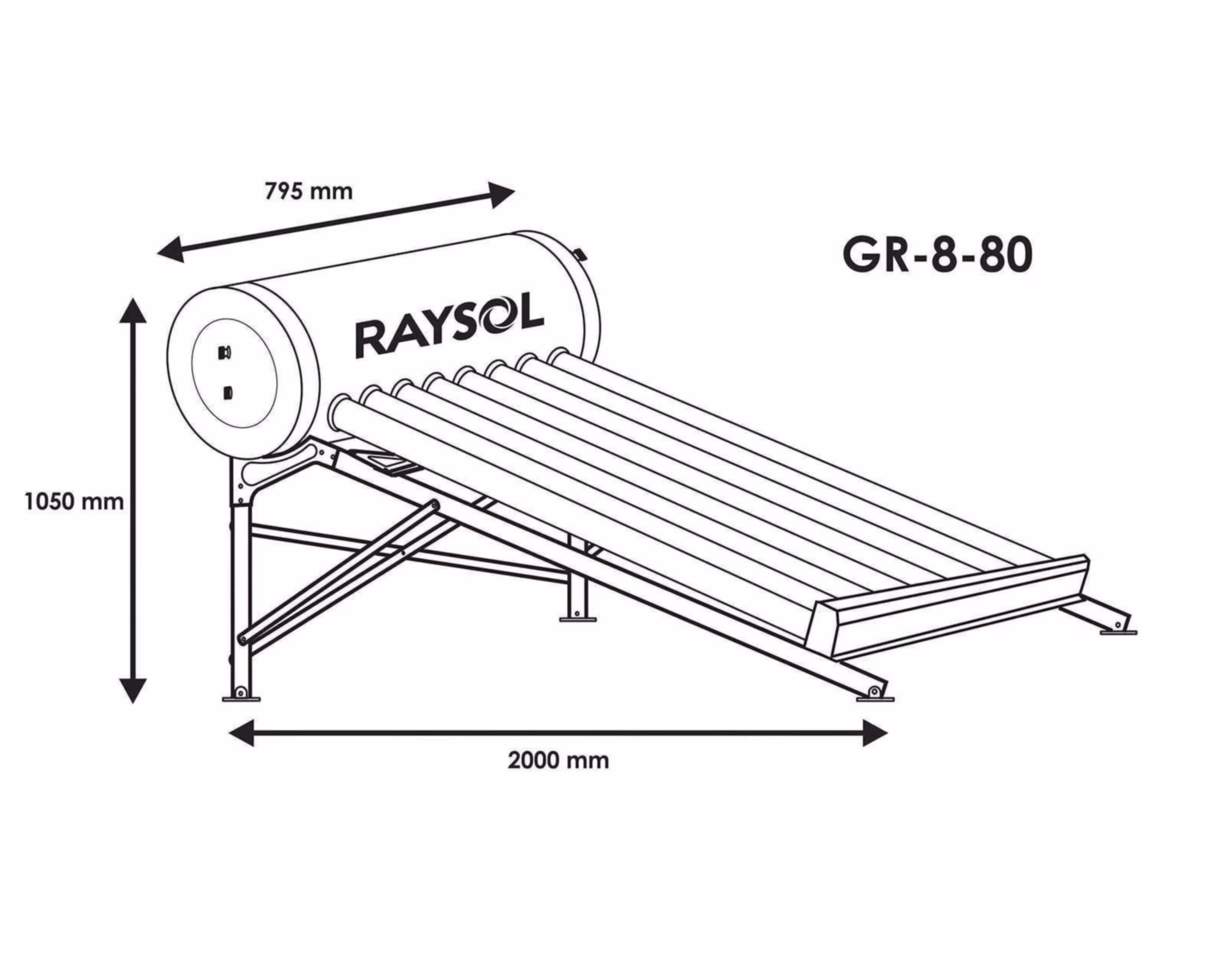 CALENTADOR SOLAR RYSE 8 TUBOS BOROSILICATO 95 LITROS BAJA PRESION TANQUE ACERO INOXIDABLE